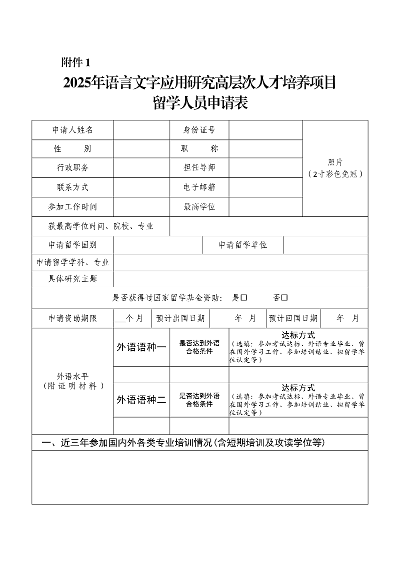 附件1:2025年语言文字应用研究高层次人才培养项目留学人员申请表