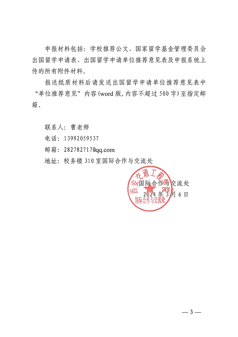 报送纸质材料后请发送出国留学申请单位推荐意见表中“单位推荐意见”内容(word版,内容不超过500字)至指定邮箱。
