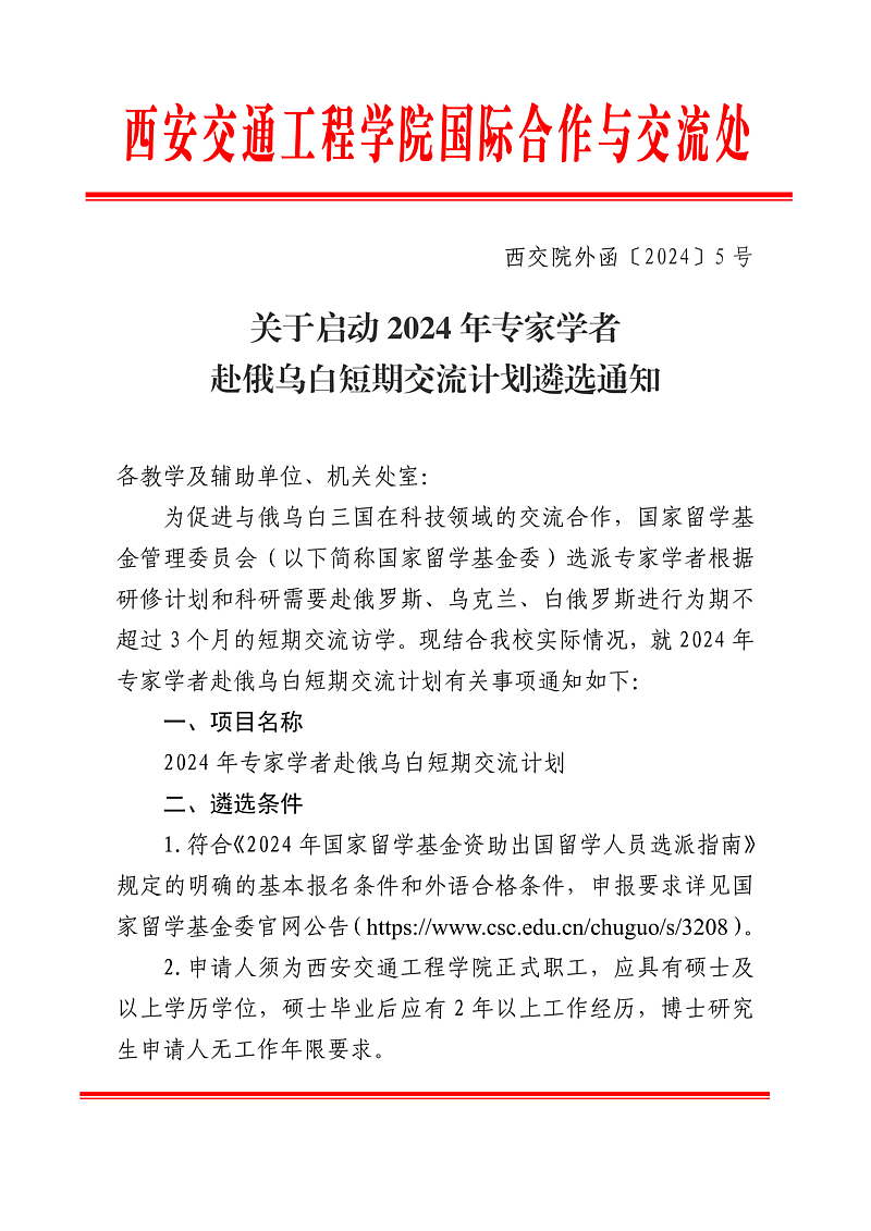 关于启动2024年专家学者赴俄乌白短期交流计划遴选通知