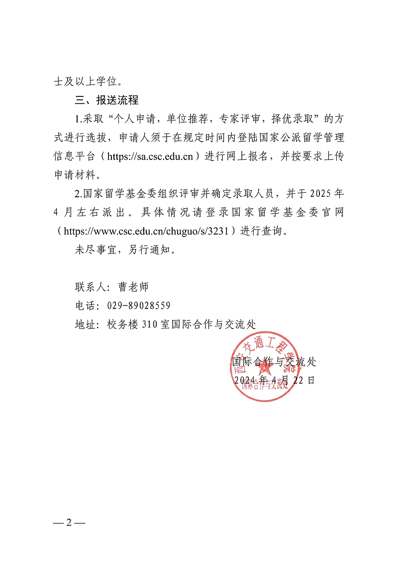2.国家留学基金委组织评审并确定录取人员,并于2025年4月左右派出。具体情况请登录国家留学基金委官网(https://www.csc.edu.cn/chuguo/s/3231)进行查询。