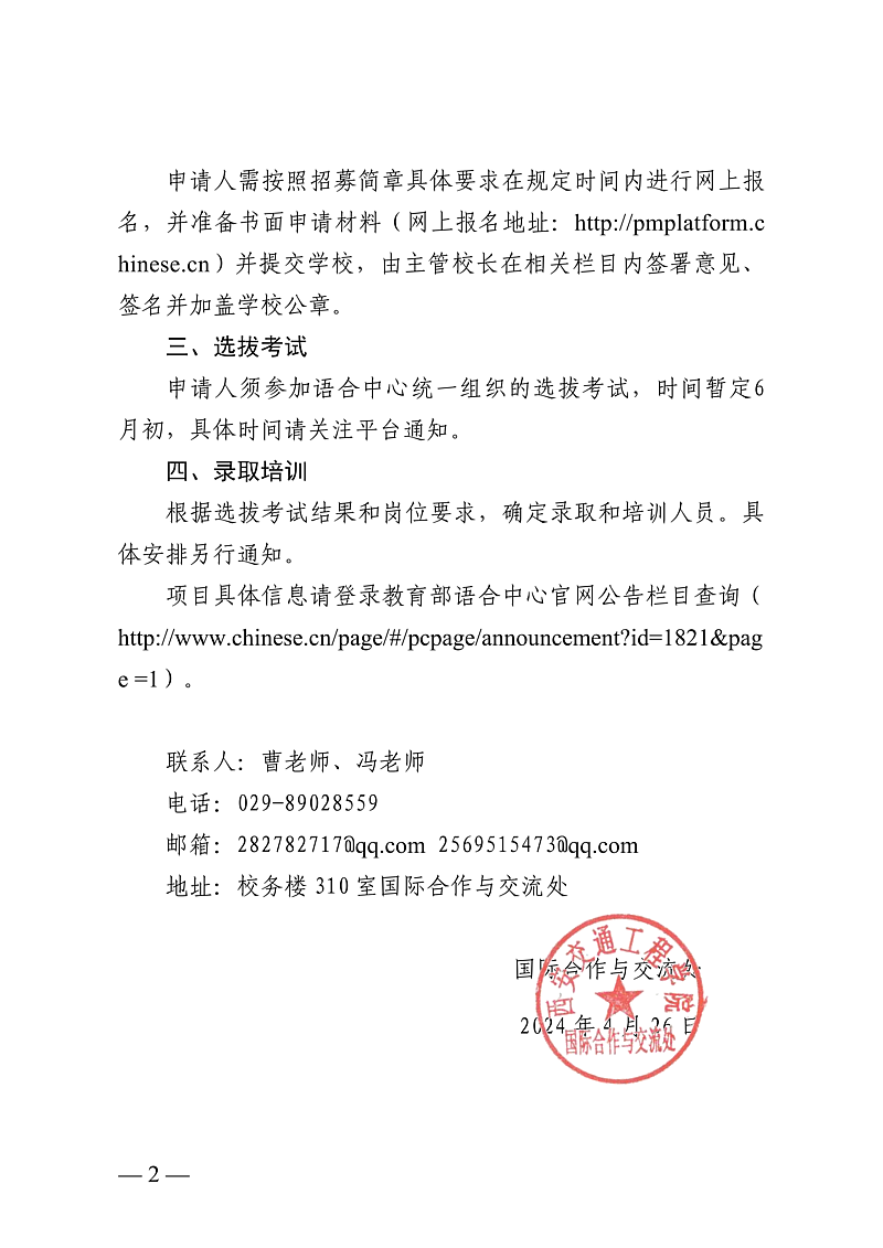 关于 2024 年国家公派出国汉语教师报名工作的通知