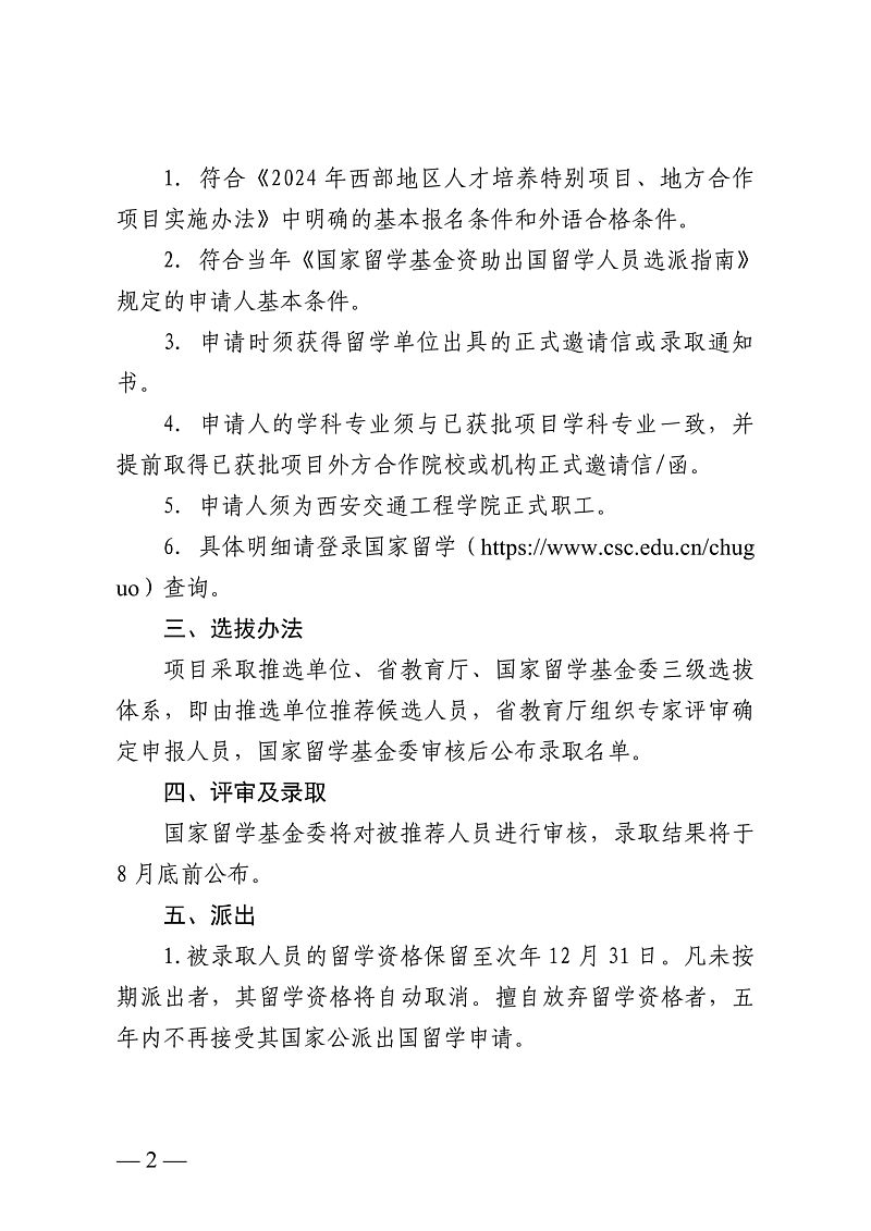 1. 符合《2024年西部地区人才培养特别项目、地方合作项目实施办法》中明确的基本报名条件和外语合格条件。