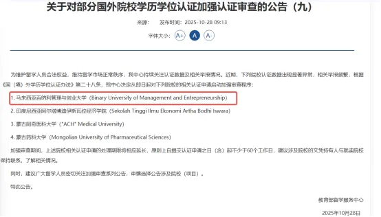 近日,一则消息在马来西亚留学圈乃至更广泛的国内高校教师群体中投下了一颗“震撼弹”:“马来西亚百纳利管理与创业大学”被中国教育部留学服务中心正式列入第九批加强认证审查名单。这并非孤例,而是近期一系列针对部分海外院校学历学位质量加强审查的延续。